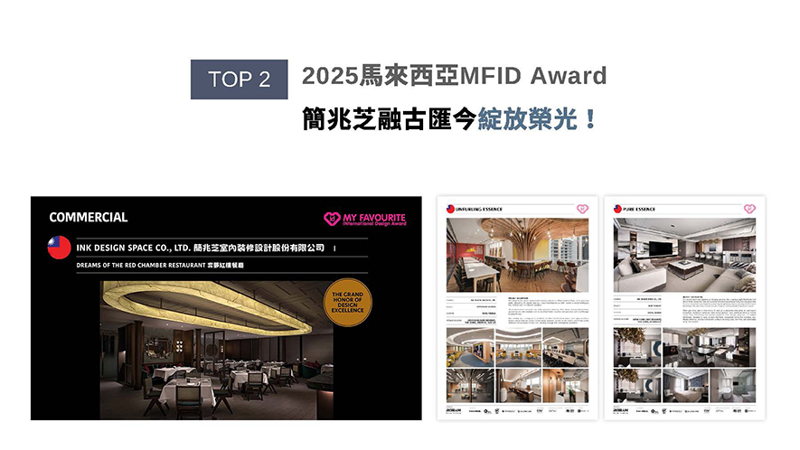 以深刻的空間敘事力與細膩的人文關懷,簡兆芝室內設計 主持設計師 簡兆芝 始終秉持「以人為本」的設計哲學,並在專業團隊的精誠協作下,從住宅到商辦、餐飲到醫美,每個作品皆展現獨特的設計語彙與深厚底蘊。2025年,簡兆芝團隊除在國際設計舞臺上頻頻獲獎,更透過精彩的學術演說分享專業見解,以卓越實力在設計領域綻放璀璨光芒。現在,就讓我們一同回顧這豐碩的一年,見證簡兆芝團隊如何創造出令人驚豔的美好居所與商業空間!