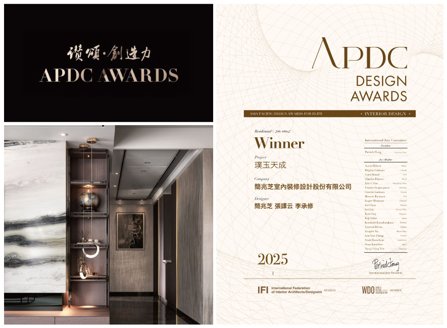 APDC亞太設計中心是室內設計聯合國組織IFI(國際室內建築師設計師團體聯盟)的全球成員。由該組織發起的APDC AWARDS,自2010年起每年舉行一次,來到第16屆的今年,依舊持續秉持「讚頌設計之創造力」的核心,致力將創新的優秀作品推廣至國際舞臺。本屆賽事,簡兆芝室內設計 主持設計師 簡兆芝 活用兩戶合併的格局優勢,輔搭案場優良的天然採光,將一戶作為無隔間的開放式公領域,給予一家人寬廣明亮的生活空間;同時,亦透過全室無高低落差的通用設計,以及嚴選低VOC、耐用易打理的優質建材,打造安全雋永的家宅《璞玉天成》,贏得賽事「Winner」榮光,為品牌榮譽再添一筆佳績!