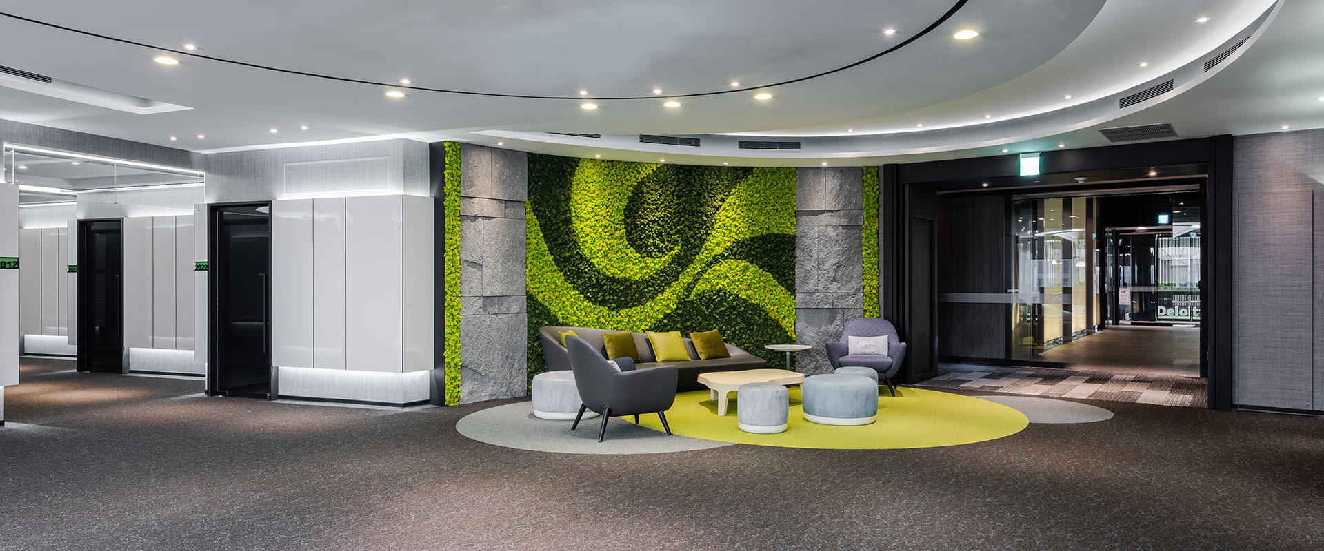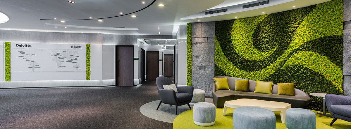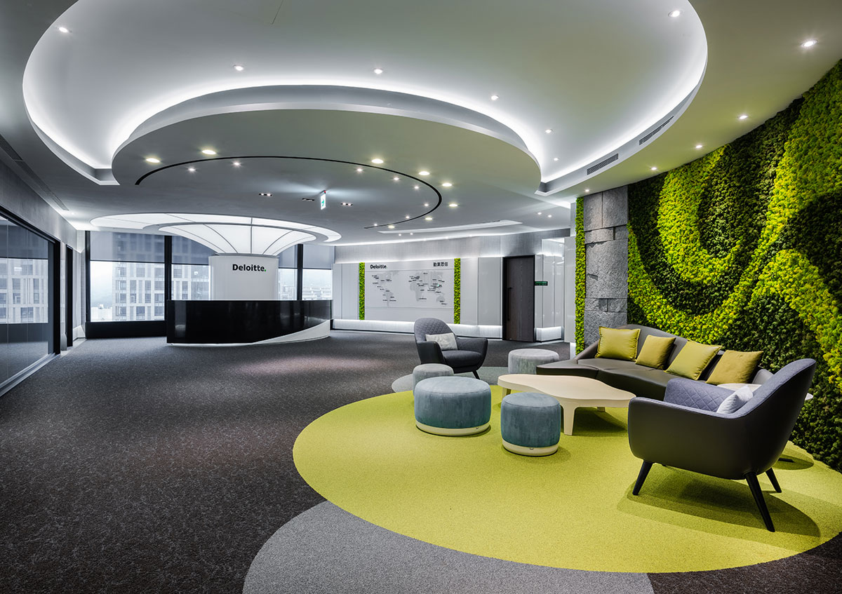 The small green dot at the end of brand logo "Deloitte." means "Green House", which aims to convey the concept of attaching importance to the ageing of the earth and environmental sustainability. And to elongate the idea to corporate purposes --- committed to provide sustainable operation for institutions, help them continue to run and thrive; therefore, stipulated that all regional affiliations must have an image of "Green House". In response to the needs of business philosophy, we intently adhere to the core concept of "Green House" as development, through the presentation of images into the space, using the configuration of shape, material and tone, to forge a green, vibrant and genuinely fun office space.