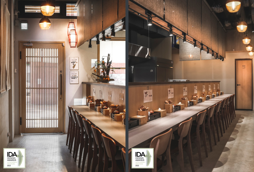 簡兆芝室內設計 簡兆芝 主持設計師 妥善運用木紋美耐板、清水模、棉麻等材質,打造洋溢和風韻味的店面風貌,另融合代表台灣文化的紅燈籠,契合品牌追求的在地化及創新性,複合混搭的嶄新饗域《漫饗和食》獲得2022 IDA Design Awards「Honorable Mention」佳譽!