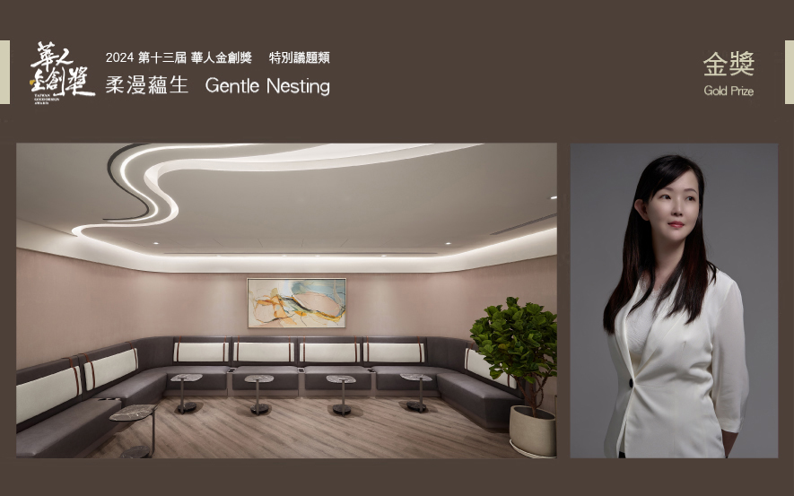 以「和諧、融合」理念巧妙演繹迥異場域的 簡兆芝室內設計 主持設計師 簡兆芝,在醫療場域《柔漫蘊生》中運用飽滿圓潤的造型元素,象徵懷孕母親的溫柔身姿,搭配大地色調營造舒適空間,彰顯醫療團隊呵護新生的使命感。而老上海風《弈夢紅樓餐廳》則藉由圓形天花板、弧形家具,傳遞「緣慳圓滿」的東方智慧,使顧客在華麗復古氛圍中品味人生的圓融。兩件作品以細膩手法詮釋品牌精神,成功獲得評審青睞,分別奪得「特別議題類」金獎與「餐飲空間類」銅獎榮譽,實至名歸!