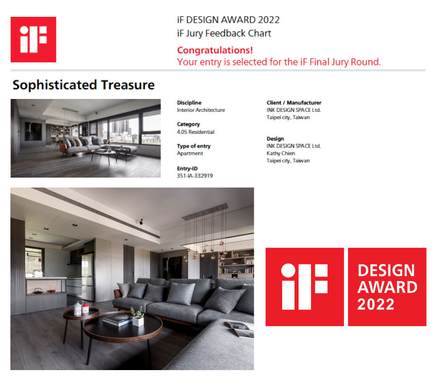 世界四大設計獎之一的德國 iF 設計大獎(iF DESIGN AWARD),自1954 年創辦至今已擁有超過60年的悠久歷史,在國際間具有指標性及前瞻性。而2022年 iF 設計大獎將透過線上初選,依據理念、外觀、功能、差異化與影響力等五項指標,評選出最優良的設計作品;根據官方資料顯示,此次評審團由20多個國家、132位設計界權威組成,總共有57國、破萬件的優秀設計師作品參加賽事,最終遴選5435件入圍,在僅有不到50%機率進入決選,唯有卓越的優秀作品,方能通過此等嚴苛的獲獎機制。