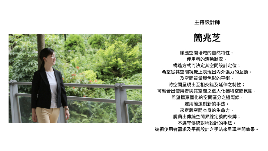 無論面對客戶抑是自身作品,簡兆芝室內設計 簡兆芝 主持設計師 始終秉持「平衡圓滿」的理念,依循場域的自然特性與使用者需求,活用建材、調和色彩,賦予空間和諧雋永的生命力。眾多沉著卻不失特色的細緻作品,攬獲各大國際賽事榮譽,現在就讓我們一起回顧她這一年來的卓越成就!