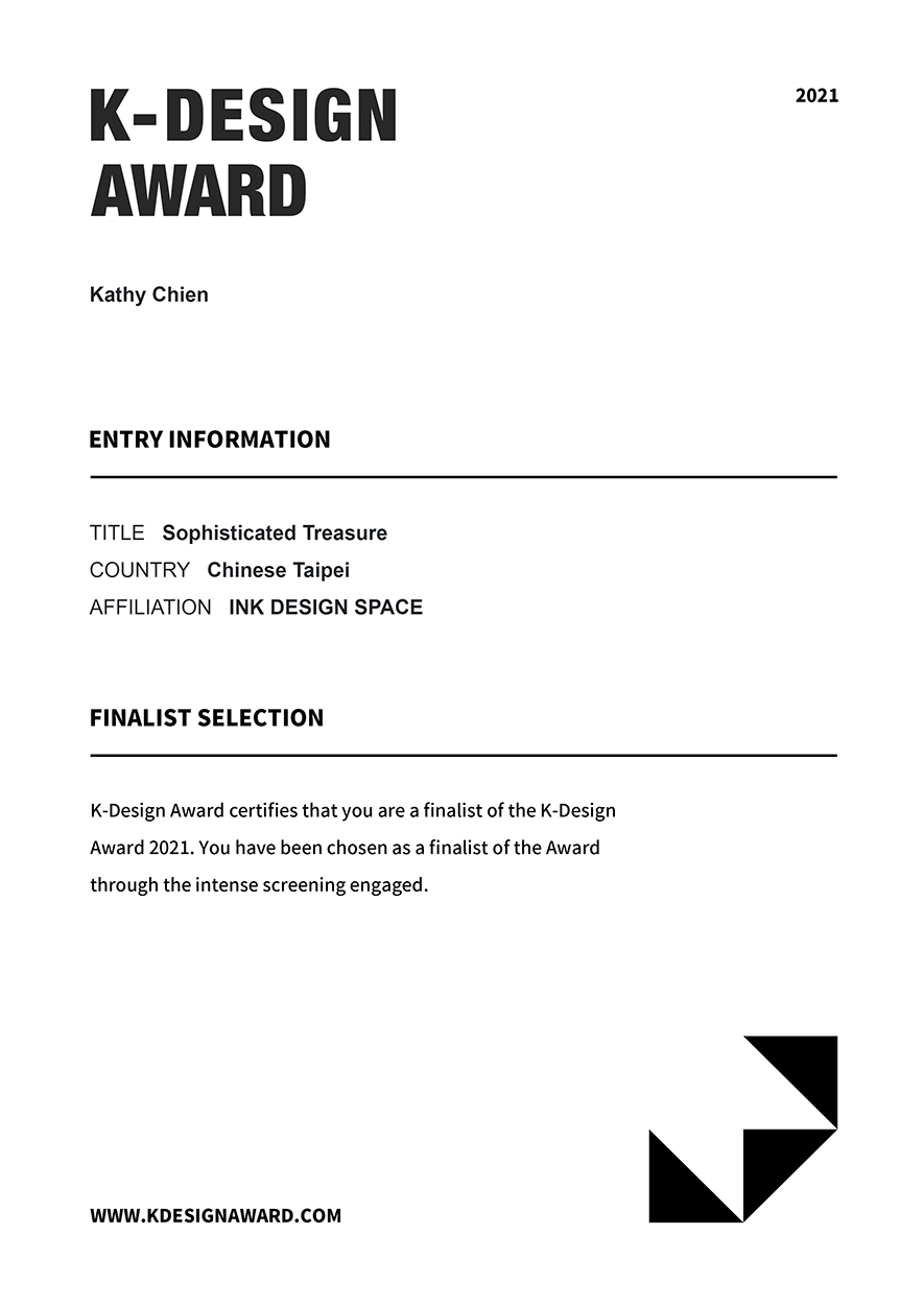 「亞洲三大設計獎」之一的韓國K-DESIGN AWARD,以「美感、獨創、實際性」三大端點,長期以來繼承全球設計者的高度評價,每年更在「產品工業」、「空間/建築」及「傳達設計」三項領域,遴選出頂尖超絕的卓越設計,讓賽事中強調的「創新能量」為當代設計帶來雋永的價值!2021年K-Design Award設計大獎,共收到來自全球21個國家、3087份的參賽作品,約11%的參賽作品(315個設計)被選為獲勝者。