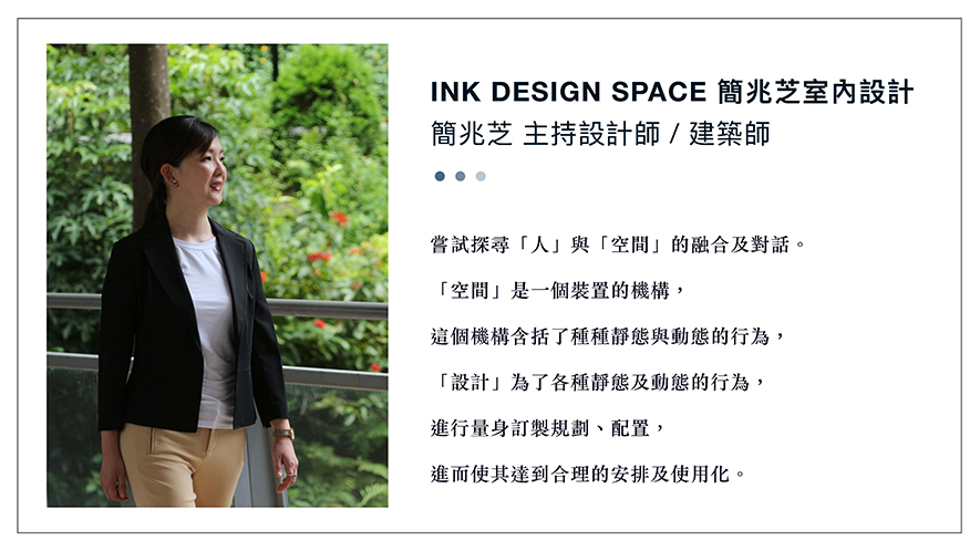 簡兆芝室內設計 簡兆芝 主持設計在設計上,從使用者角度出發,以創新手法抹去僵化界線,在張力十足的視感中,打造與其生命相互輝映的空間處所;於自身,則體現在終將回歸校園,用專業視角彌補學院教育不足的生涯規劃。每一次選擇都再再表現,她與生俱來的共感與才華,及反饋他人的真摯情意!相信接下來,她也將會用脫繭般的丰姿,在設計界大放光彩!