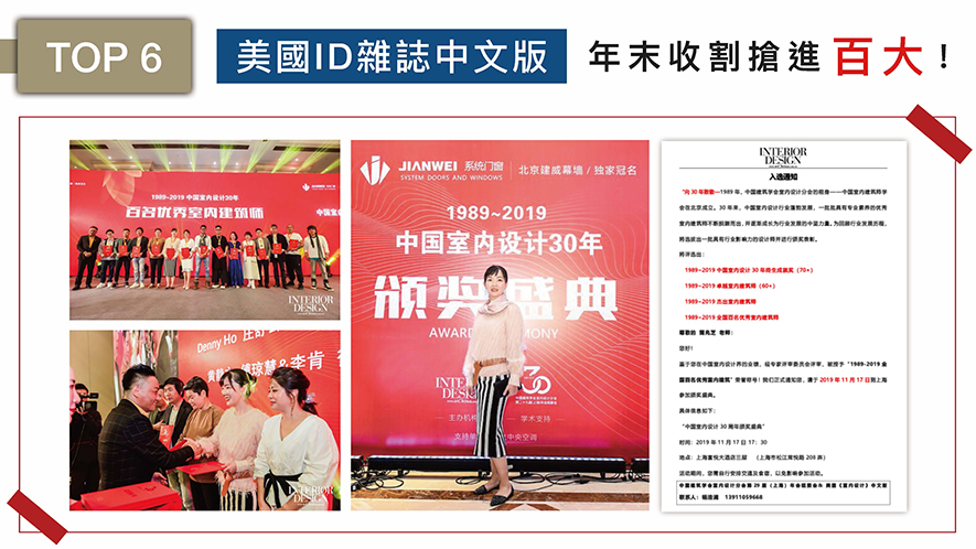 善於捕捉元素意象的 簡兆芝室內設計 簡兆芝 主持設計,順應空間自然特質,卻不守陳於傳統做法,總能兼及機能與美學,將業主需求化作帶有生命氣息的創新逸品,不僅因此攬獲多項國際大獎,更憑藉設計天賦與知識傳承的責任感,幾度深入校園,為年輕學子開拓視野,以「空間轉譯者」聞名於兩岸四地。現在,就讓我們一起回顧2019年,她為設計界締造的精彩紀錄!
