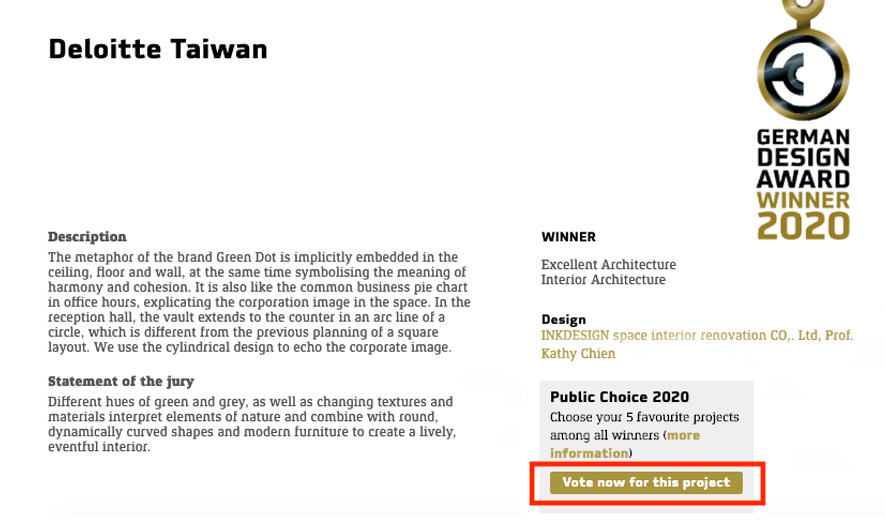German Design Award作為全球重點設計賽事,每年接受來自各國建築、通訊及產品領域優秀設計,並以多元的審查視野,如今年便跨國邀集39位專業評審,深入三大領域,遴選對德國及至國際具開創貢獻的作品,使獲獎者不僅得到這項來自國際的權威認證,更能將其品牌推送至世界各地!