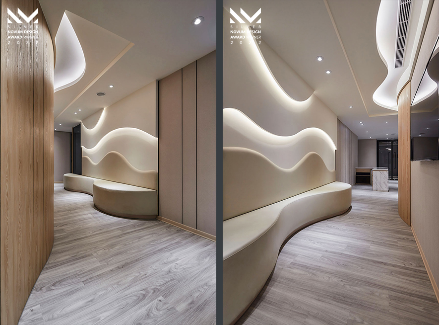 簡兆芝室內設計 簡兆芝 主持設計師 藉由圓滿豐富的線條,勾勒女性孕育生命的身形曲線,打造出澄淨溫暖的生殖醫學中心作品《煦光蘊玉》,並延續長久以來的「平衡」設計理念,精心調和軟裝、硬體的色彩及材質,結合自然天光與人造燈光的映照效果,活化醫療場所的空間氛圍,細膩靈巧的精湛表現,榮獲2022年Novum Design Award銀獎,為品牌佳績再添一筆!