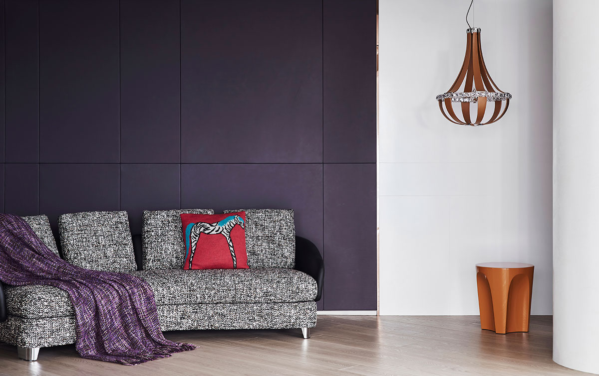 We featured the modish simple Italian sectional sofas as the core of the interior design. Carefully arrange the color schemes, selected materials, brilliant illuminations, and homey furniture to achieve the design concept of creating a "well-balanced space." Plan an open-patterned public area and secluded private domains. In addition, set up unique-shaped faux ceilings to decorate the odd structural crossbeams. Then, take advantage of user-oriented home appliances and eco-friendly floorings, ultimately accomplishing a highbrow residence with both aesthetic and functional features.